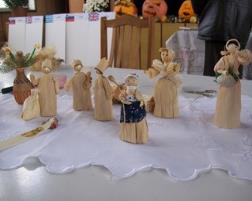 PONEDELJEK, 17. 11. 2008 Po kulinaričnem izobraževanju prejšnjega dne se nam je zdel obilen zajtrk pust. Seveda smo ga vseeno z veseljem pojedli saj smo vedeli, da nas čaka cel dan v Brusnici prepuščen naši domišljiji. Ko smo prispeli v delavno dvorano smo opazili novo delavnico. Odlični slovaški organizatorji (Anna in Miro) so nam ponudili še eno zelo zanimivo delavnico. Izdelovali smo punčke, dekle, žene, fante, kmete…iz koruznih olupkov. Dobro obiskana delavnica nam je pustila, da smo svojo originalnost pokazali tudi na tem področju. Pri večerji smo se zavedli, da se projekt bliža koncu in smo večer preživeli prijetno, zabavno in koristno z večino udeležencev. Seveda ni manjkalo slovenskih zvokov harmonike. |